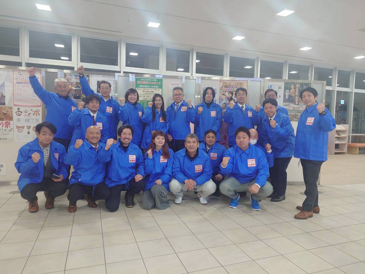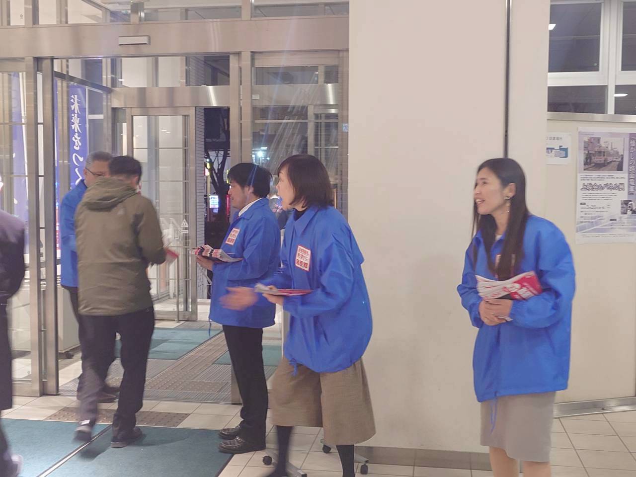 吉田真次後援会の皆さんと自民党のビラ配りをしました。